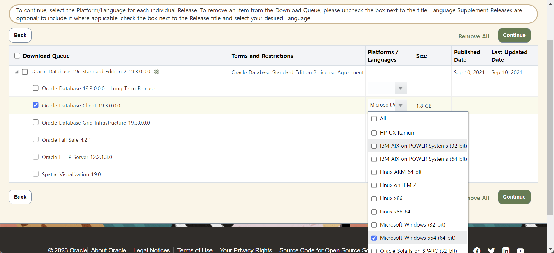 나는 Client만 필요해서 해당 파일만 선택했다 우측 드롭다운에서 내 컴퓨터와 맞는 것을 선택한다.