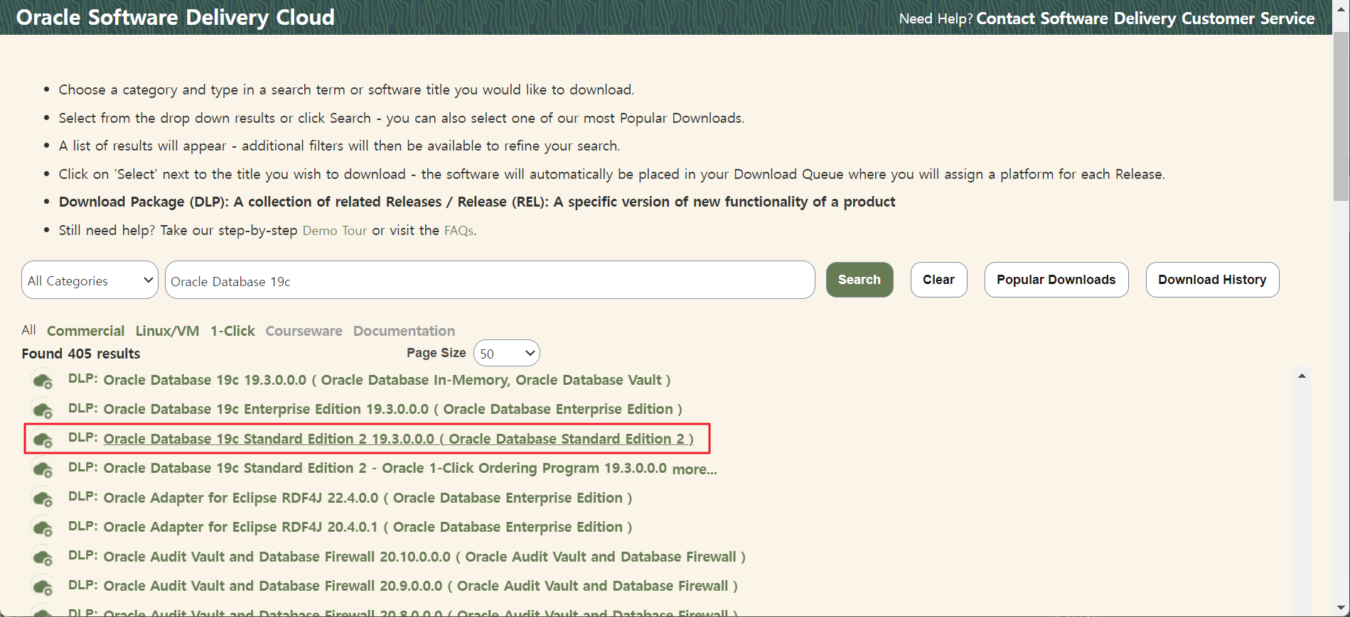 Oracle Database 19c를 검색한 후 standard Edition을 선택했다. (아무거나 선택한 듯..?)