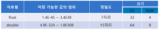 같은 4byte 크기지만 float이 int 보다 더 큰 범위의 값을 저장