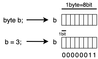 - 변수 b에 10진수 3을 저장하면 컴퓨터는 이를 2진수로 변환하여 메모리에 저장